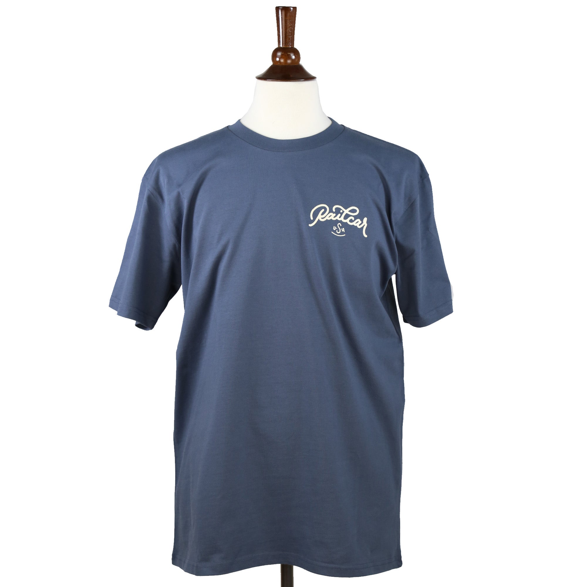 Railcar USA Script shirt 6.4 ounce khaki color premium tee shirt. Screen printed in-house