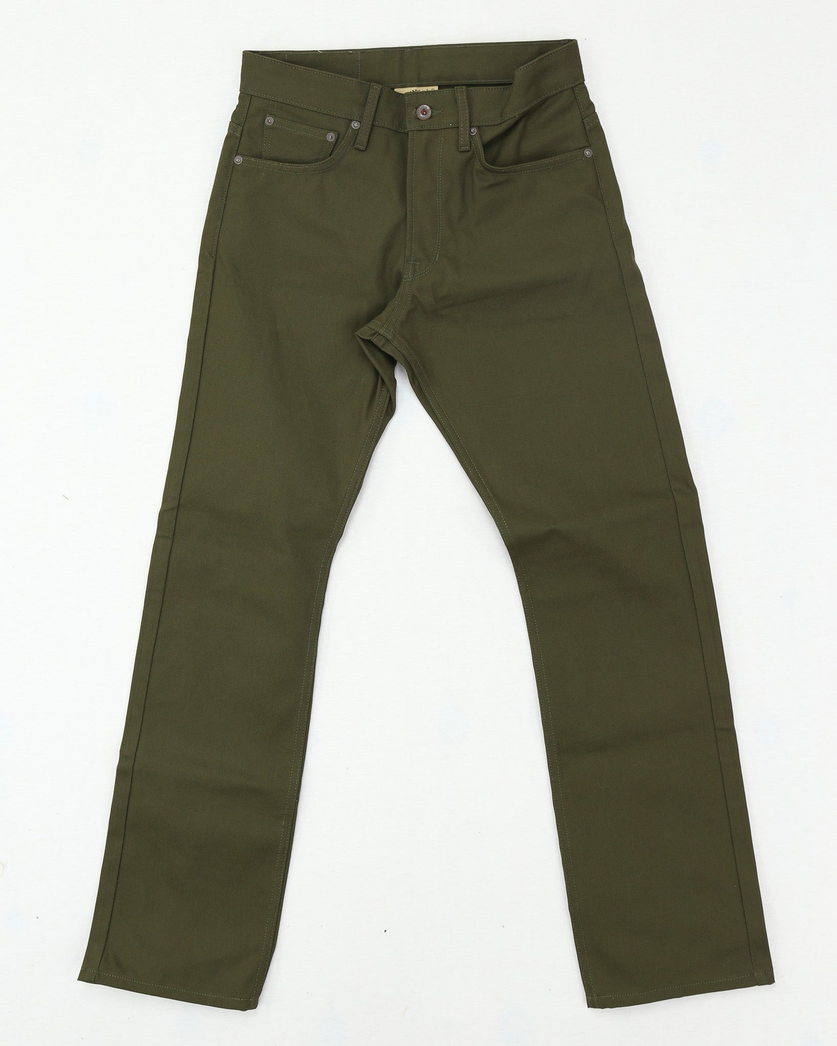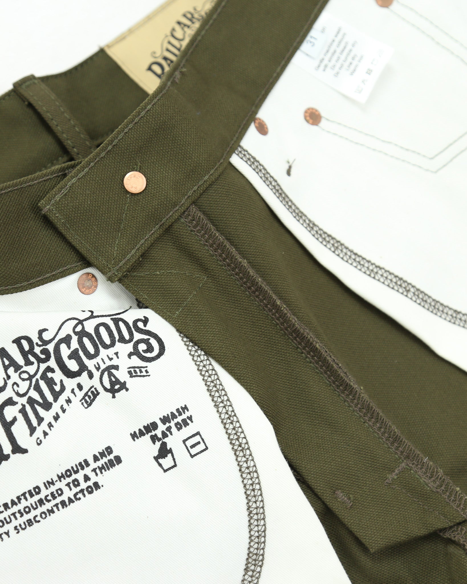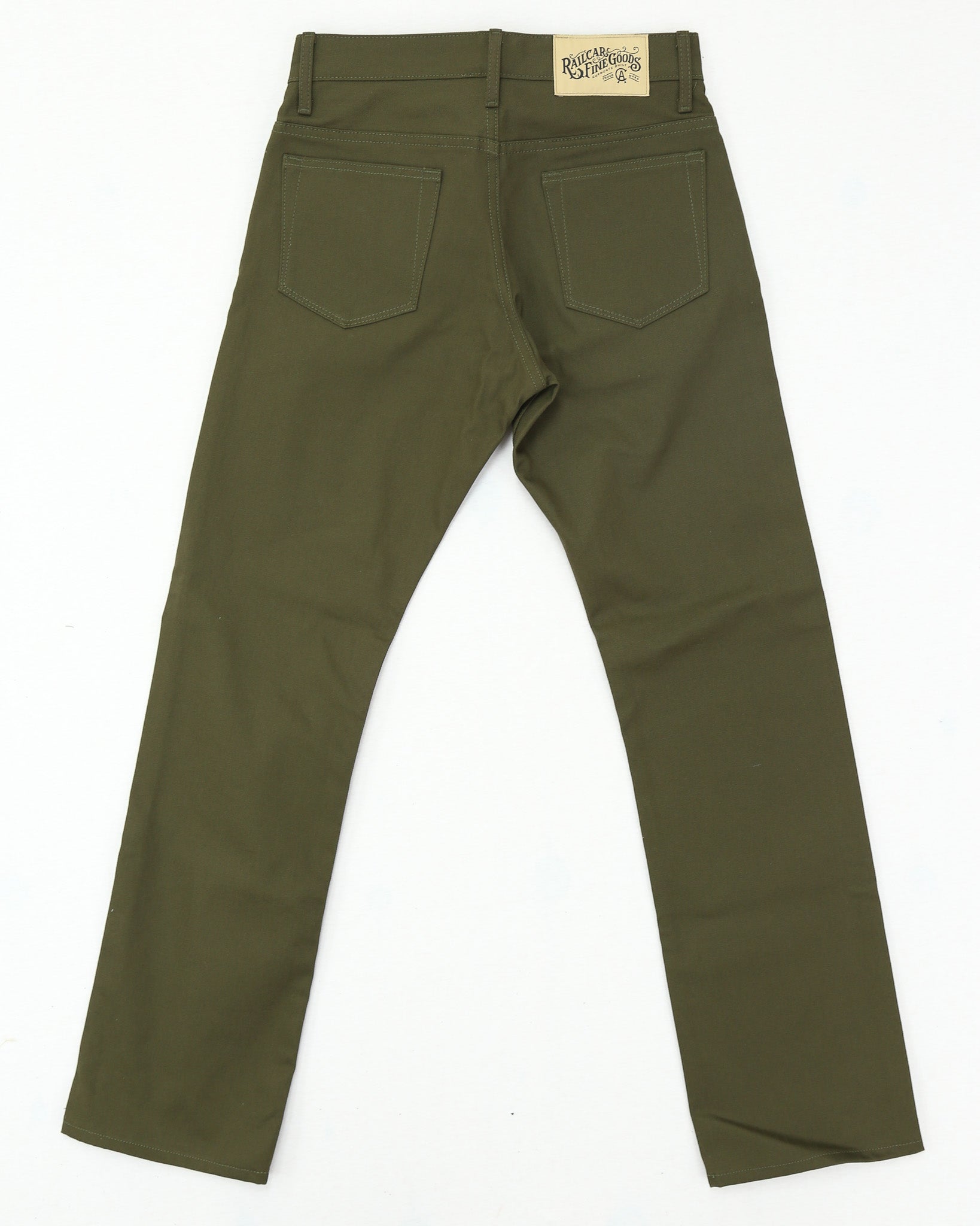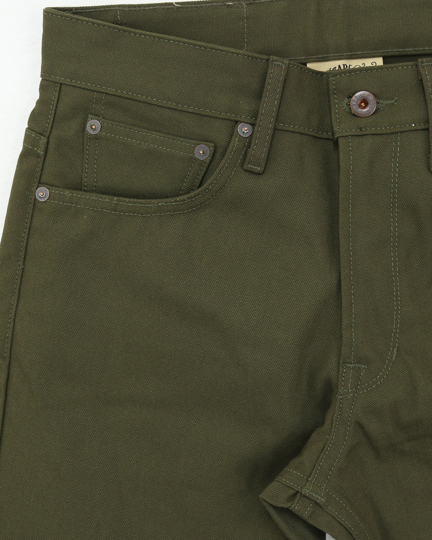 Railcar Rebel modern straight leg 4 pocket American seaweed green canvas canvas pants. Durable American milled 12 ounce canvas material that was cut and sewn in-house for the highest quality into the signature Railcar Rebel fit. The Rebel fit has a enough room in the thigh that goes down to a loose knee that shoots straight down to the bottom opening. See the spec chart below for specs and don't hesitate to reach out if you have any questions.