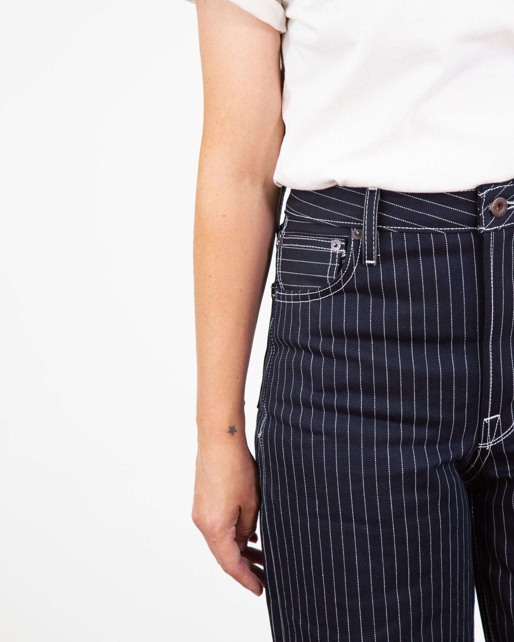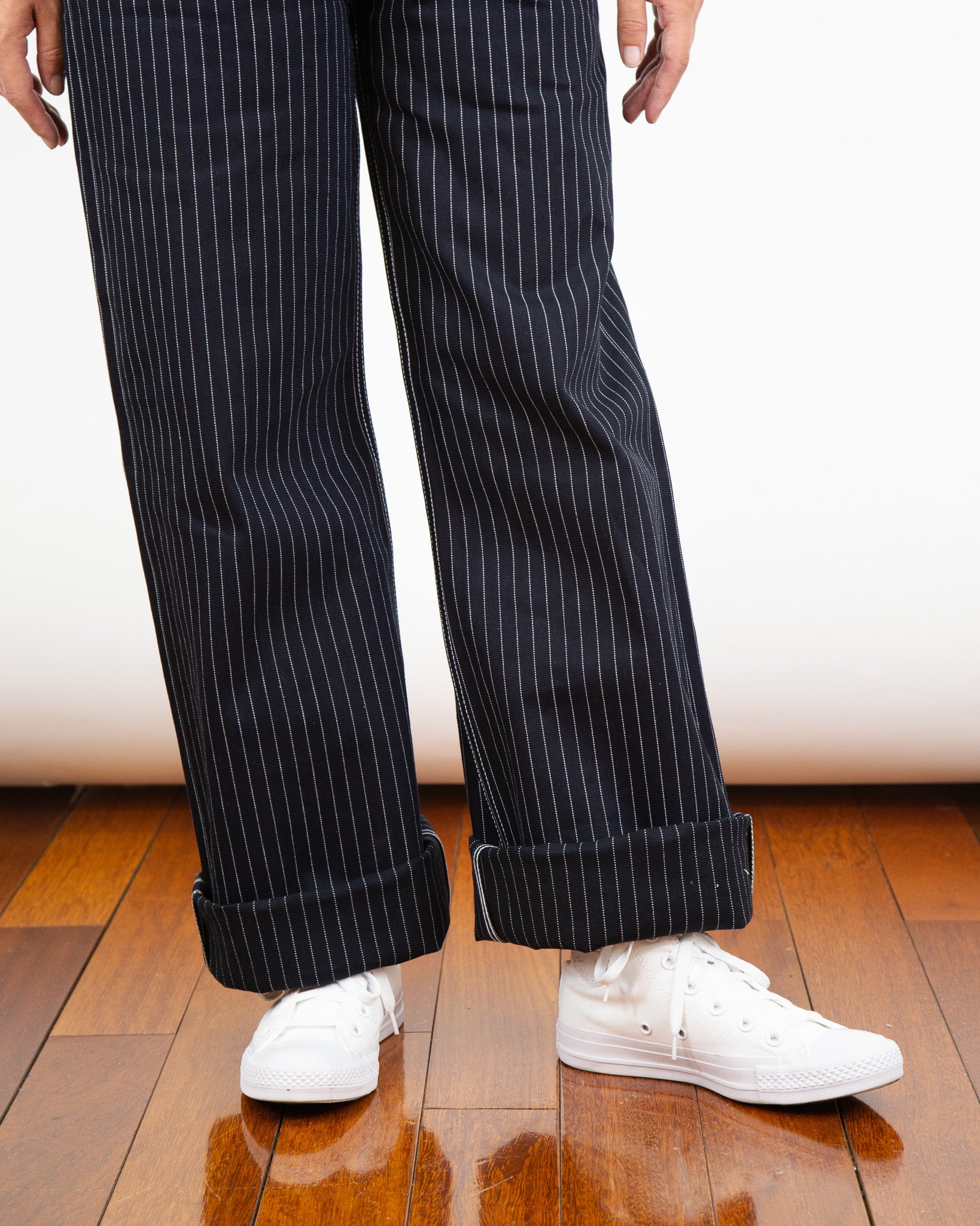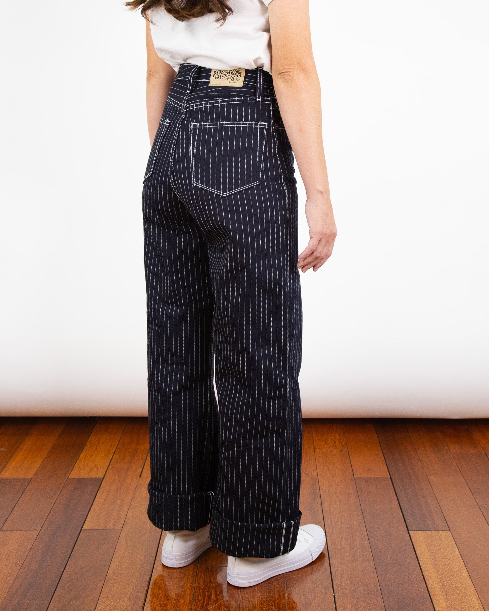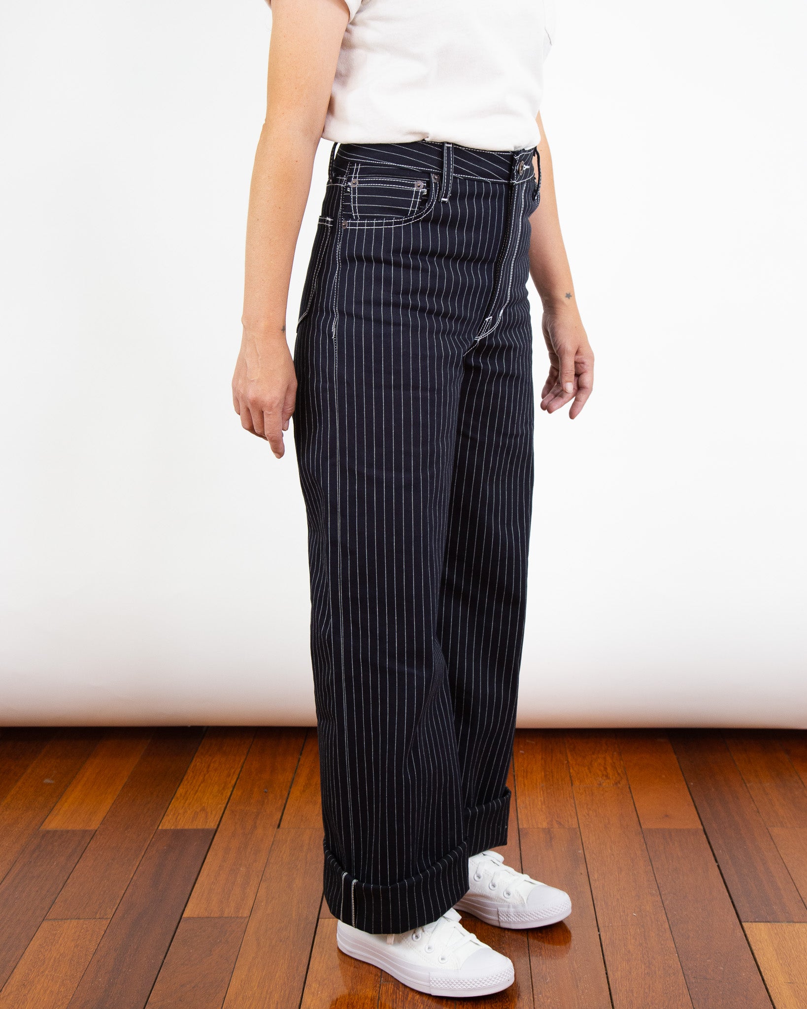 The Emily wide leg jeans in medium 100% cotton 13.75 ounce shadow wabash selvedge raw denim. The shadow wabash has a dark top indigo warp and a black under black yard that'll give the denim a unique aging when the denim wears. The denim will achieve a shadow like fade when the top indigo surface fades down. The Emily fit offers exceptional comfort and easy wearability in all weather conditions. Key features include selvedge detailing, shell-edge interior stitching, and a two-piece waistband designed to resist overstretching. We've incorporated a long 6-inch zipper for effortless on-and-off functionality. These jeans are ready to wear right out of the box—no break-in period required. Thanks to our updated fit geometry, waistband gapping is virtually eliminated, as confirmed through extensive development and testing.