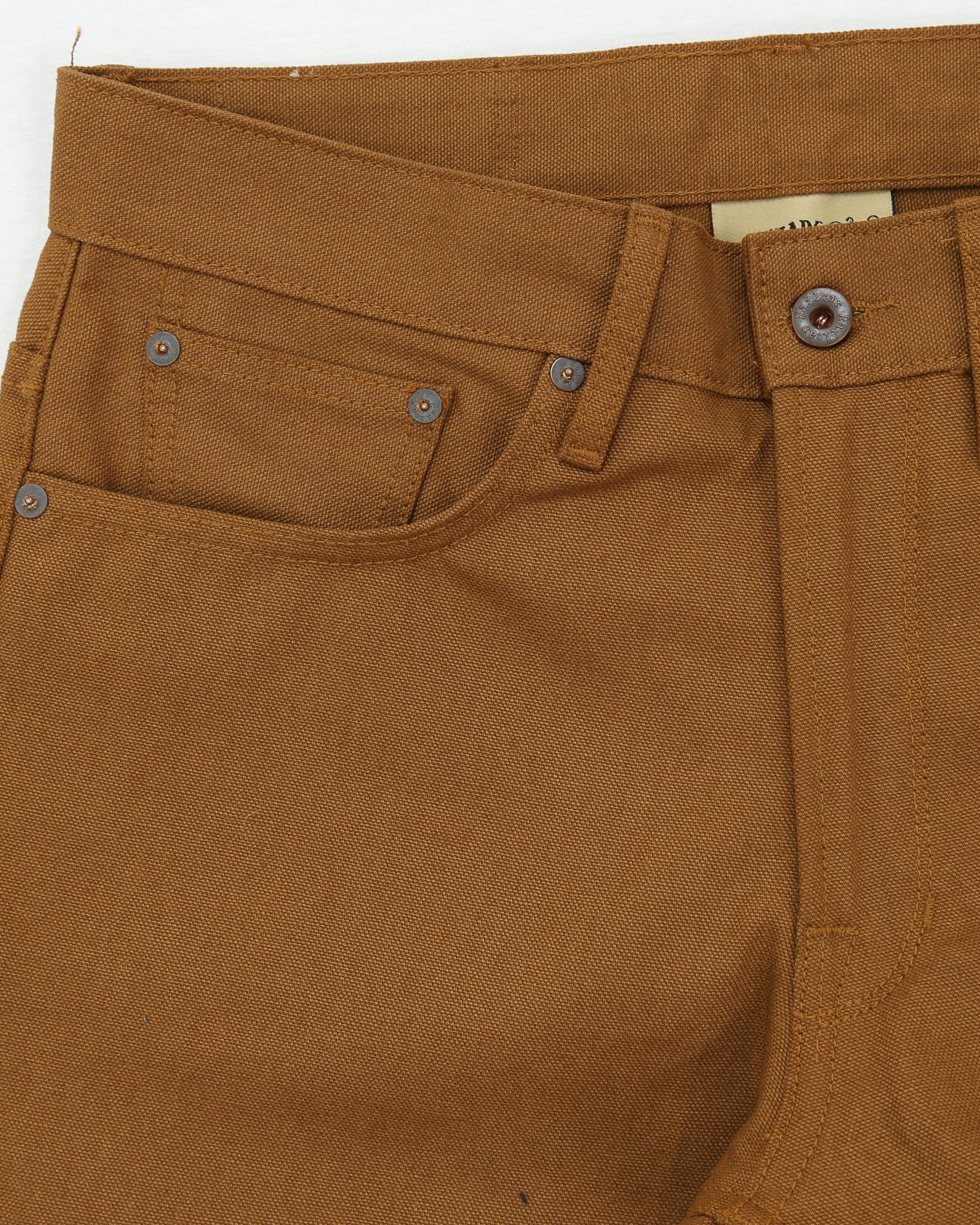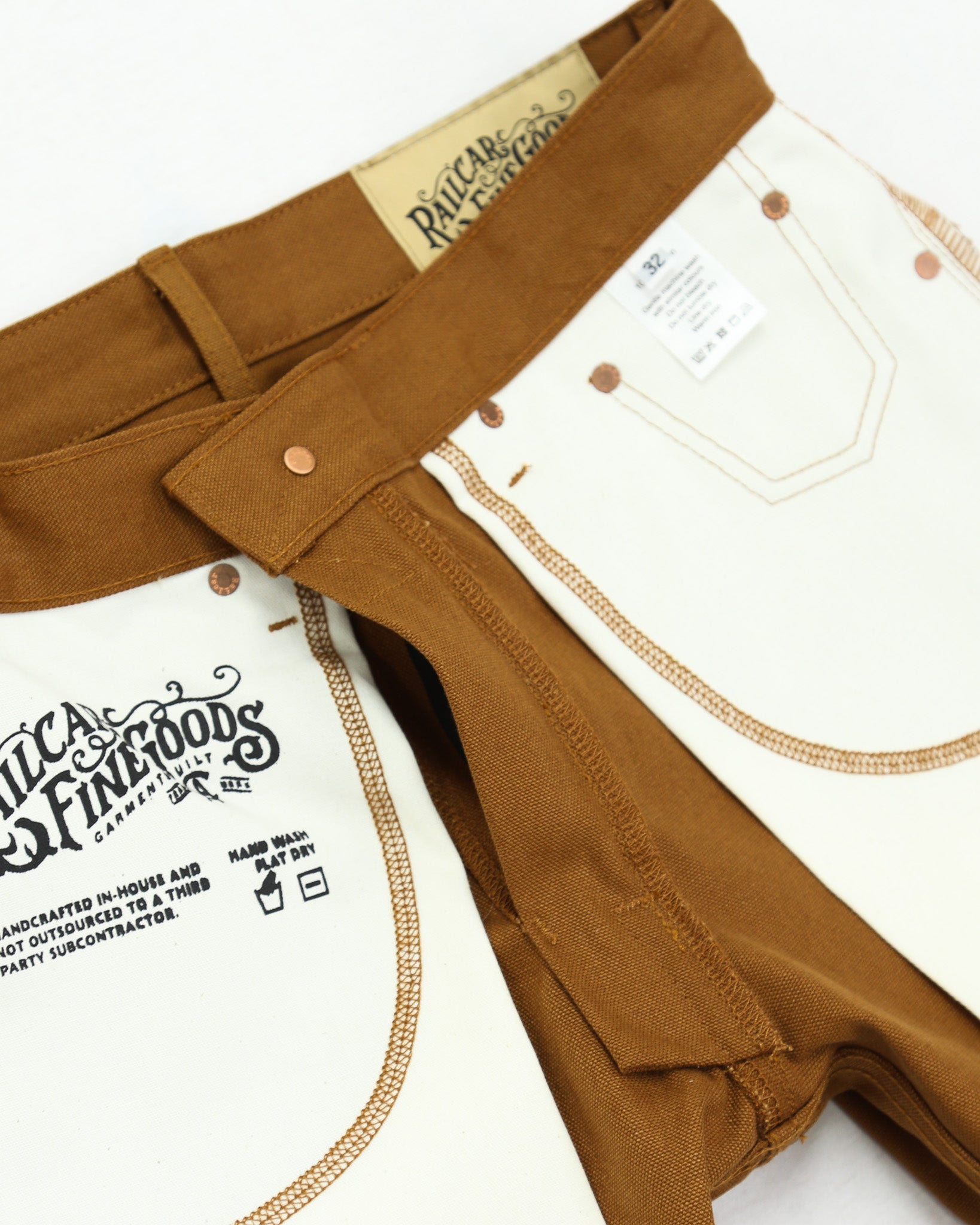 Railcar Rebel modern straight leg 5 pocket duck canvas pants. Durable 12 ounce canvas material that was cut and sewn in-house for the highest quality into the signature Railcar Rebel fit. The Rebel fit has a enough room in the thigh that goes down to a loose knee that shoots straight down to the bottom opening. See the spec chart below for specs and don't hesitate to reach out if you have any questions.