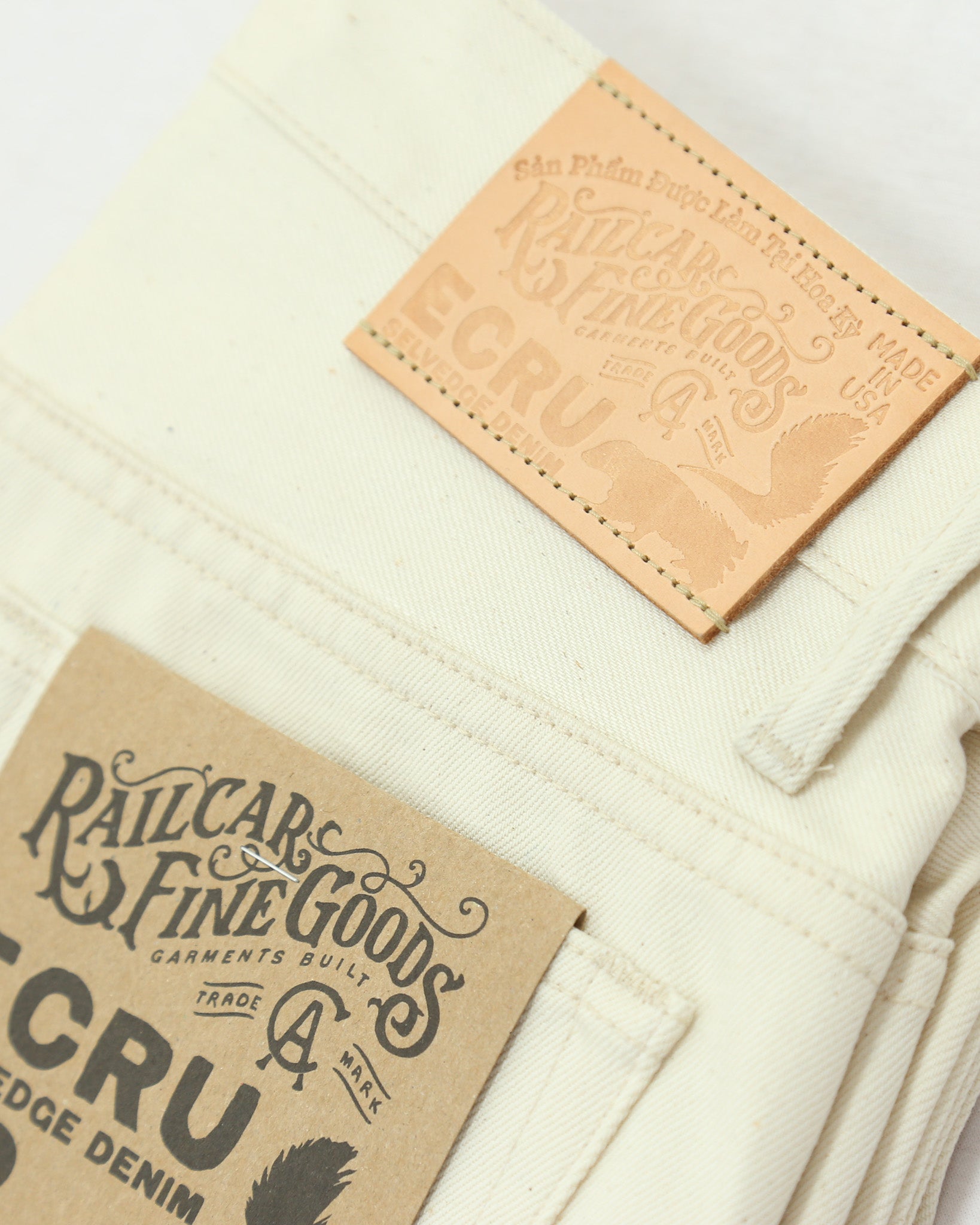 - 12 ounce medium weight, natural ecru selvedge denim.